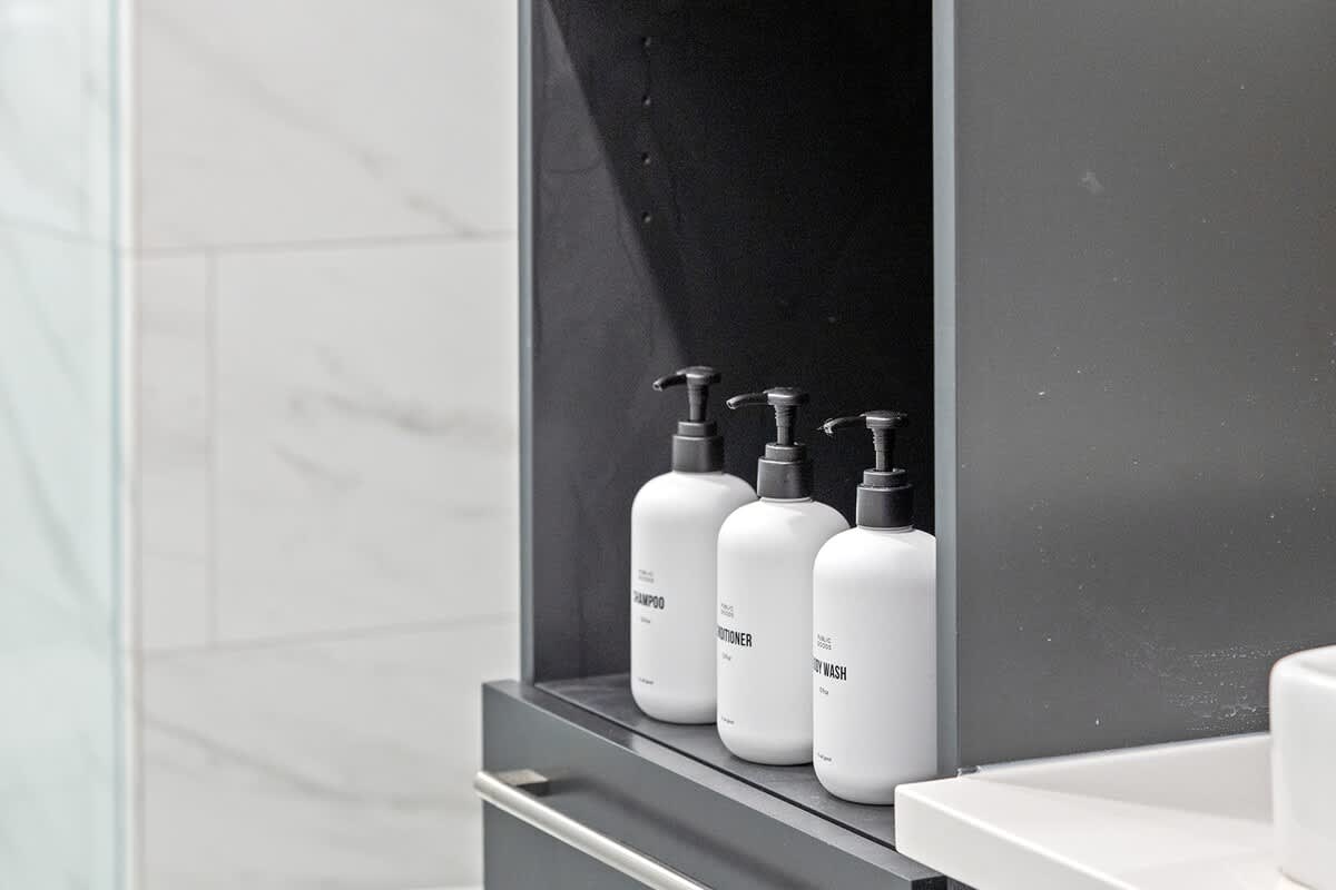 Not only do we stock this property for each guest with a fresh bag of organic coffee, creamers, sugars and an assortment of teas, it's also fully stocked with hotel-like toiletries such as; shampoo, conditioner, body wash, hand soap, dish soap, emergency dental kits, dishwasher pods, laundry pods, salt, pepper, olive oil, Q-tips and more!