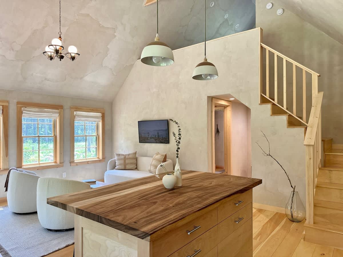 This Japandi-inspired getaway has been curated throughout and offers two bedrooms - one loft bedroom (queen) with Casper mattress and one main floor bedroom (queen) with Casper mattress - organic linens and towels, a fully stocked kitchen with four-burner electric stove and oven, oversized sink, dining kitchen island with butcher-block counter, quartzite countertops, toaster, french press coffee maker, heat and AC, curated decor, a Samsung "Frame" TV, Sonos, high speed WiFi (300 mbs), dedicated workspace, washer and dryer available for guest use, Public Goods toiletries and personal products, and seasonal flower and herb gardens...just to name a few features. Come enjoy Maine in a whole new way! Dogs welcome with a $100 pet fee.