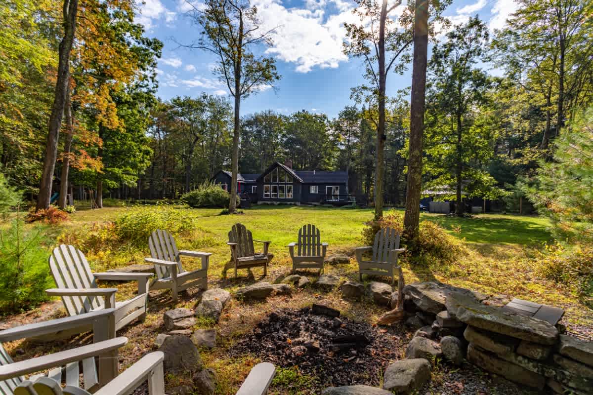 Beautifully designed interiors feature a stone fireplace, a modern kitchen & restful retreats. Outside, enjoy a large deck with dining & lounge area, firepit, hot tub & a children's playhouse. Conveniently located near Delaware River, Bethel Performing Arts Center & 20 mins from skiing & tubing at Big Bear Mountain!