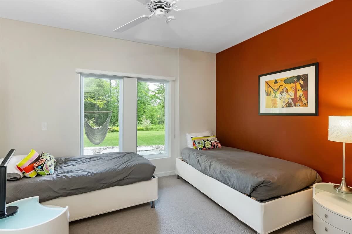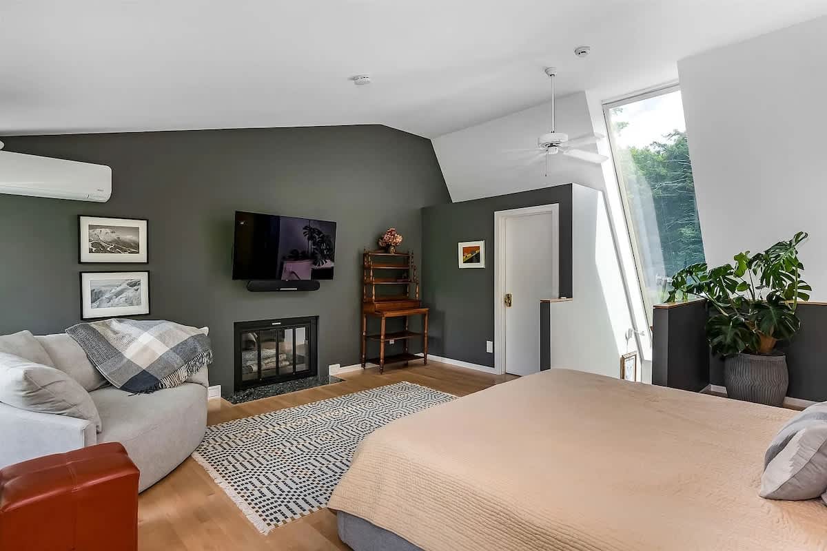 This property is 20 minutes from Stowe Mountain Resort (with no traffic). To take the back road and avoid the traffic on Mountain Road, turn south onto VT-100S, take an immediate right at The Shaw’s onto West Hill Rd for 0.7 miles, turn left onto Mayo Farm Rd for 0.5 miles, turn left onto Weeks Hill Rd for 0.3 miles, turn right onto VT-108/Mountain Rd for 6.9 miles. Arrived.